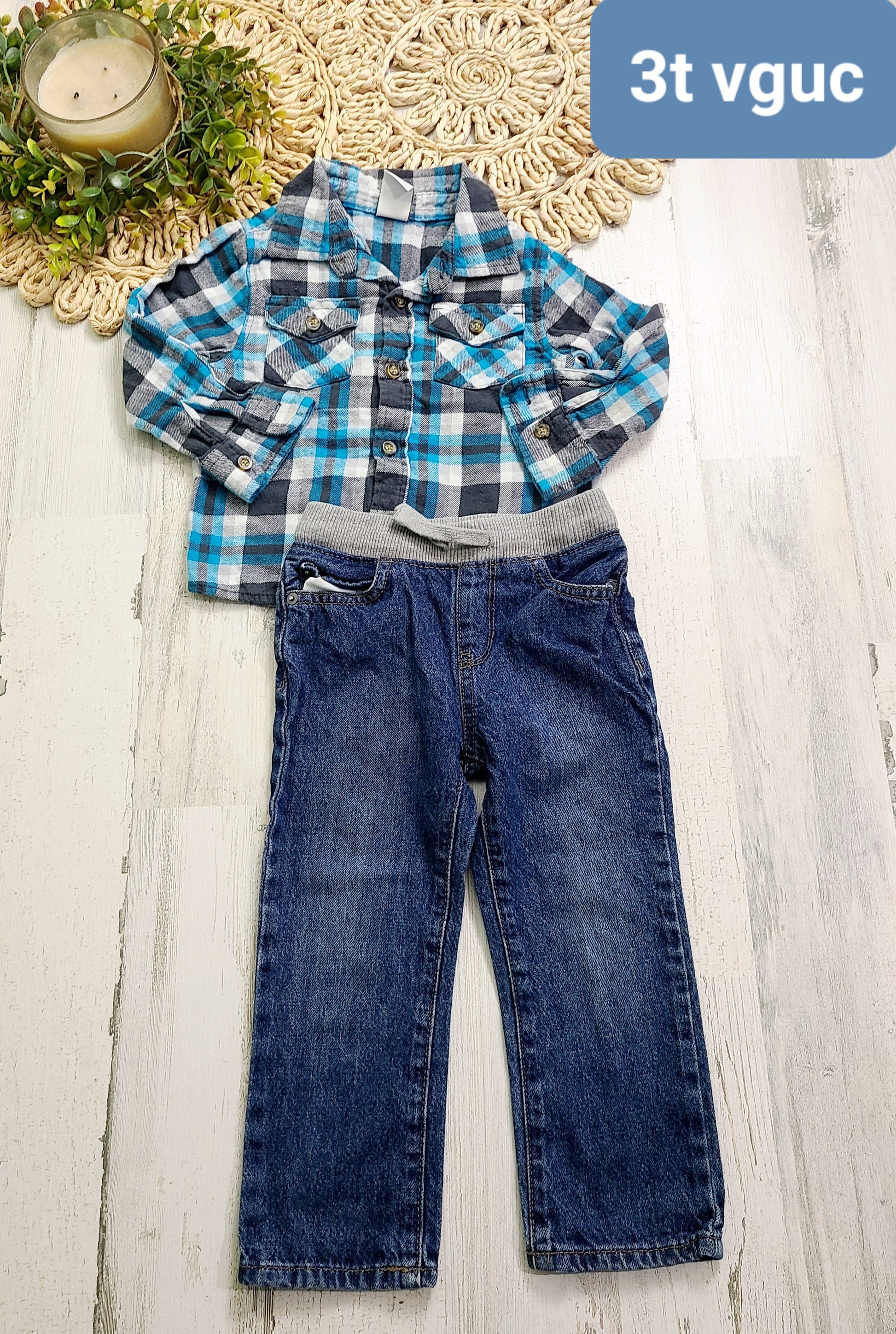 blue plaid and jeans 3t