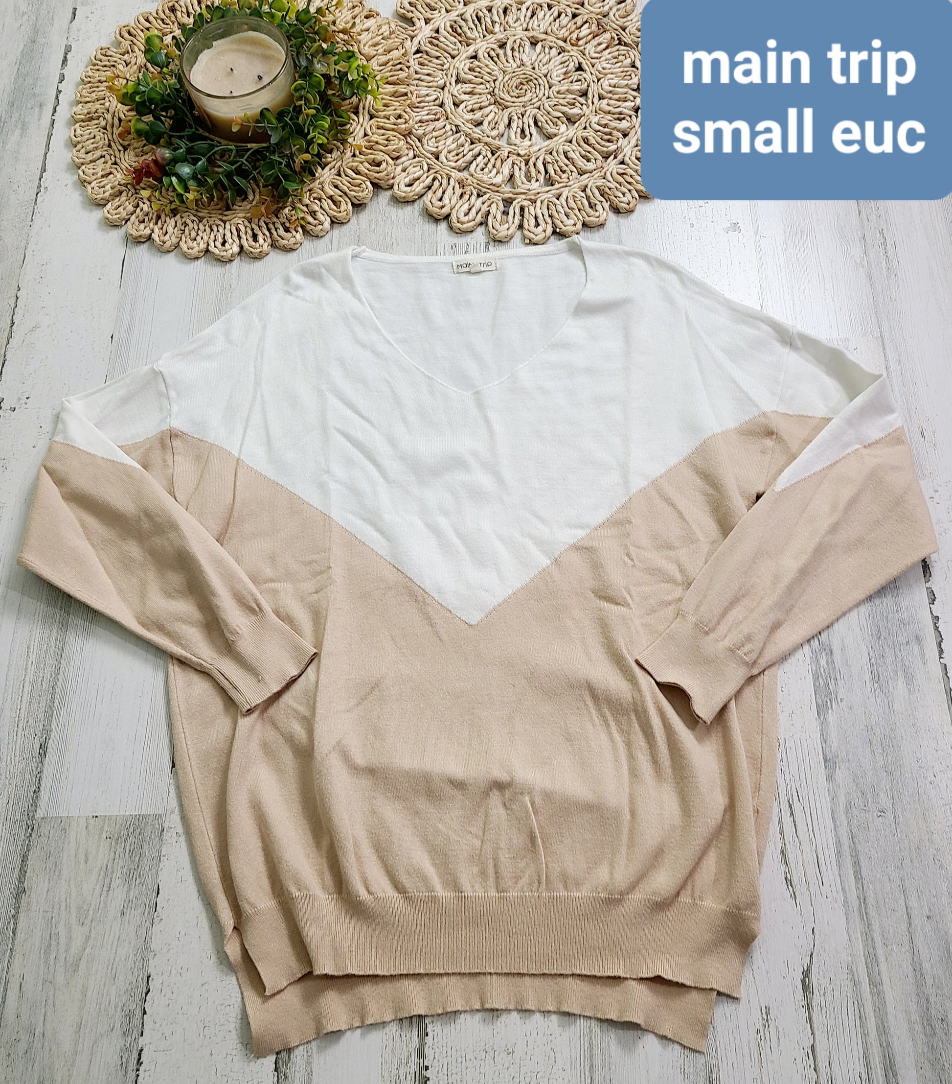 main strip ivory and tan sweater